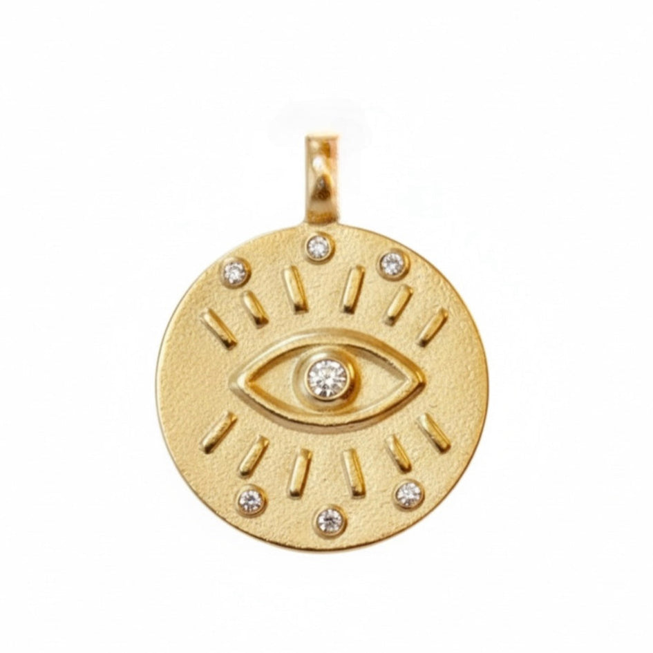 Our Maka Coin is handcrafted in 14k gold featuring 7 diamonds